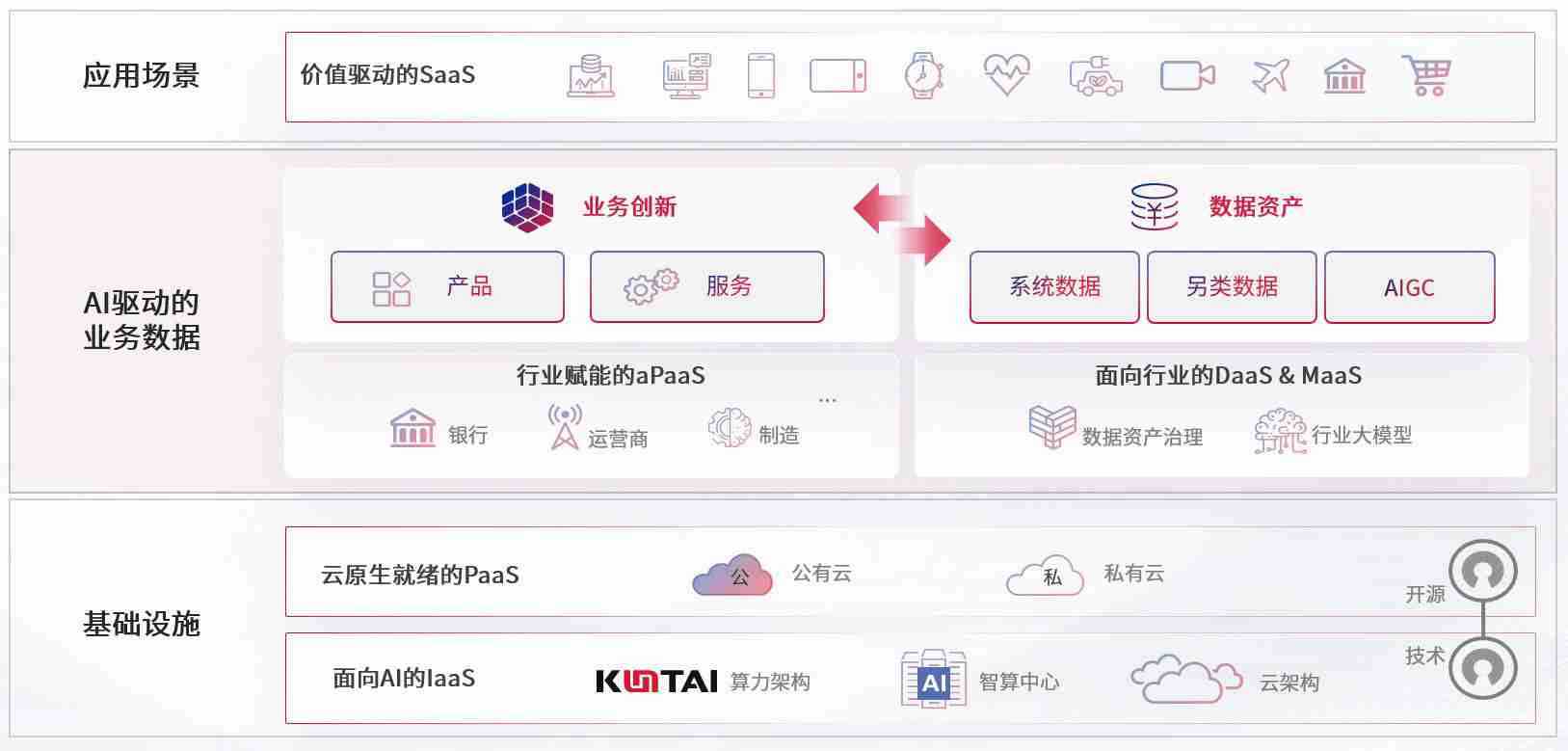 数字时代,,,围绕企业数字化转型的关键要素,,,尊龙时凯数码开创性的提出数云融合战略和技术体系框架,,,着力在云原生、、、、数字原生、、AI原生和信创产业上架构产品和服务能力,,,为处在不同数字化转型阶段的快消零售、、、、汽车、、、、金融、、、医疗、、、、政企、、、、教育、、、、运营商等行业客户提供泛在的敏捷IT能力和融合的数据驱动能力,,,,构建跨界融合创新的数字业务场景和新业务模式,,助力企业级客户建立面向未来的核心能力和竞争优势,,全面推动社会的数字化、、、智能化转型升级。。